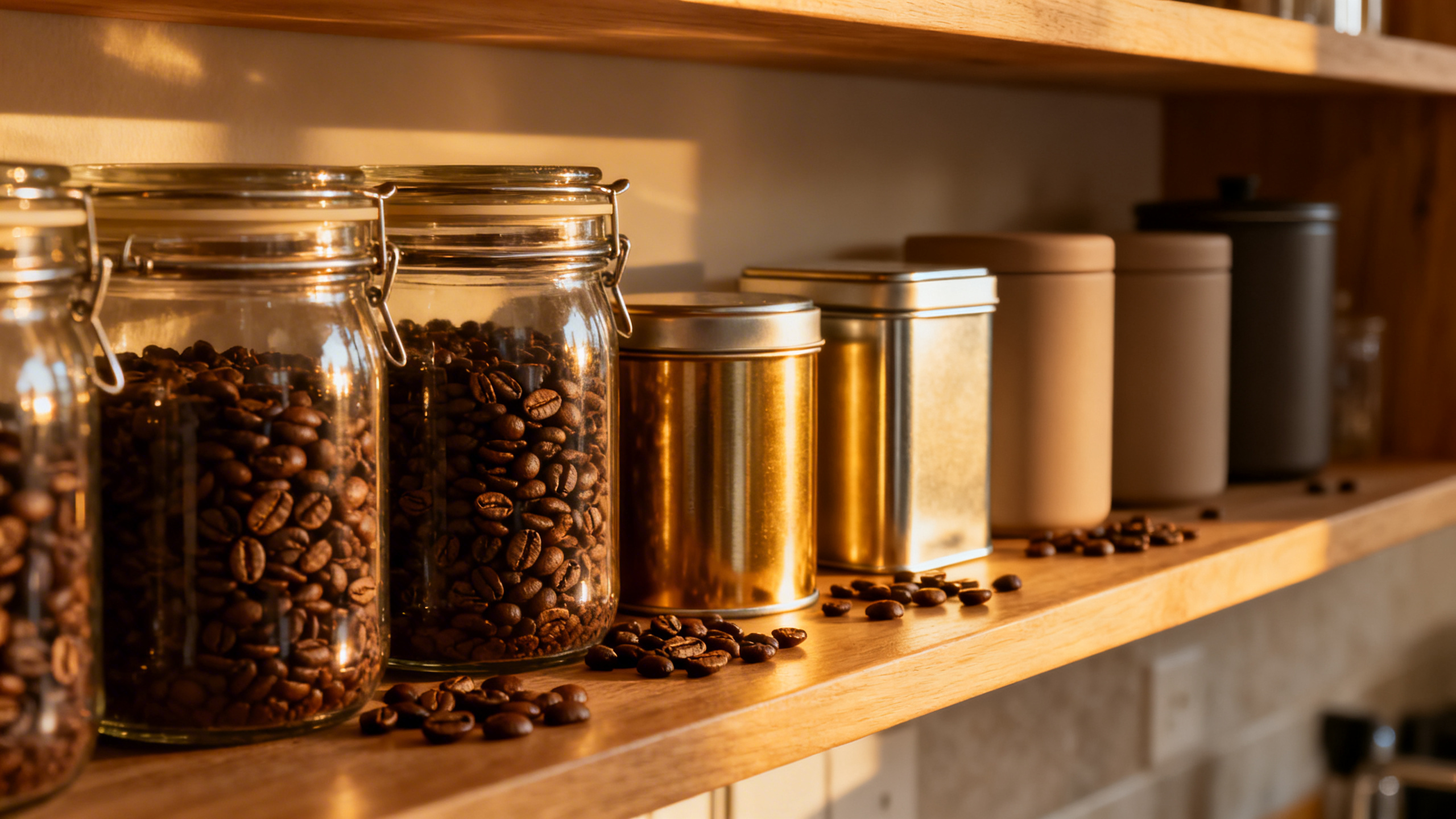 Les récipients en acier inoxydable avec fermeture à pression sont souvent recommandés par les baristas de compétition pour leur neutralité aromatique et leur efficacité. À l’inverse, le bocal en verre transparent posé sur le comptoir — aussi esthétique soit-il — est à proscrire.