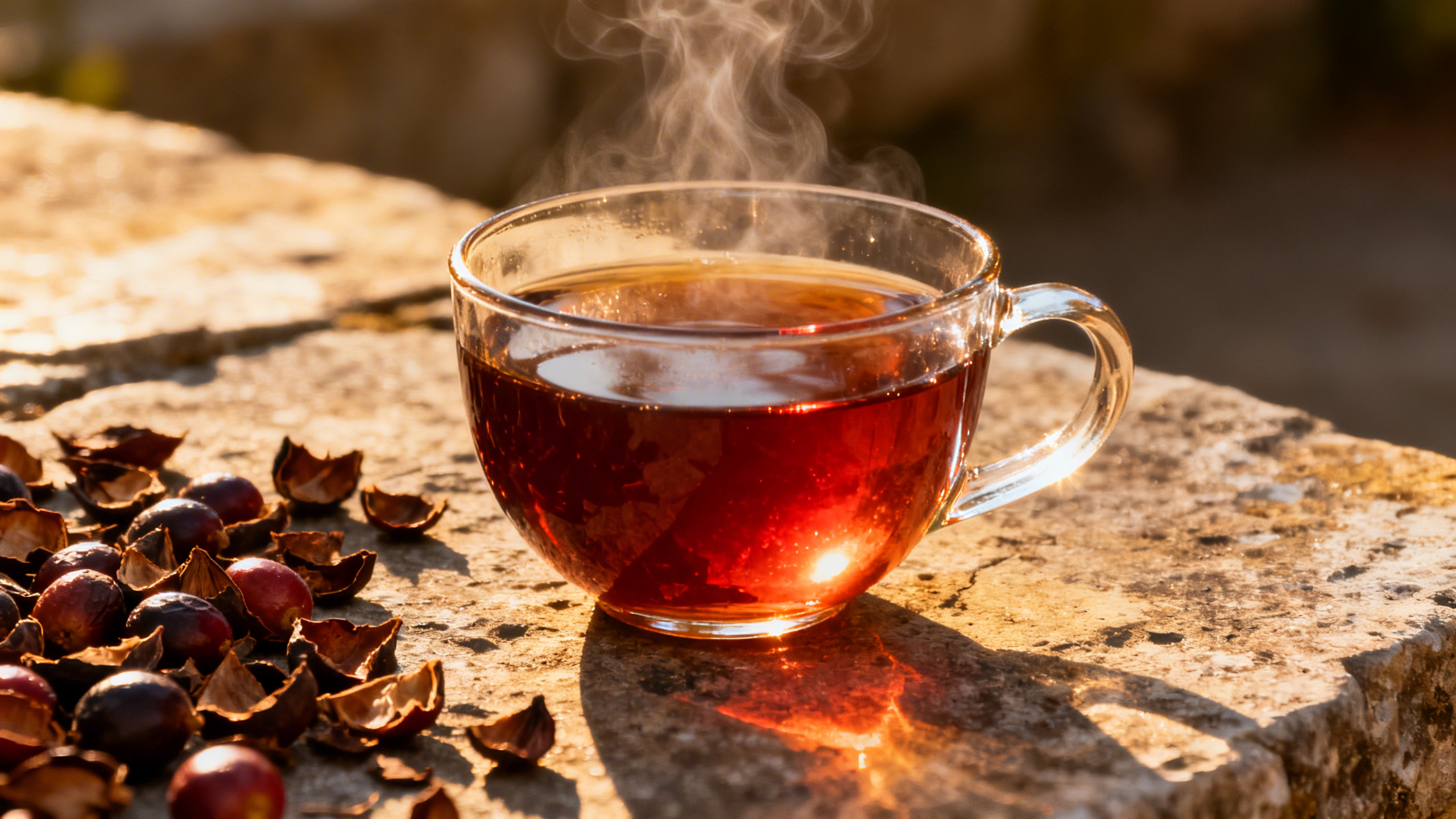La couleur de l’infusion, entre l’ambré et le rouge bordeaux, renforce cette impression fruitée et distingue visuellement la cascara de tout autre boisson chaude.
